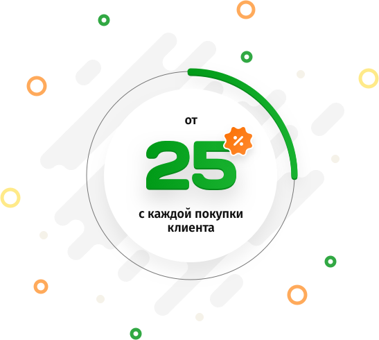 Когда Партнёр приводит Клиента, то получает вознаграждение (от 25% до 55%) от стоимости купленного Клиентом сайта.